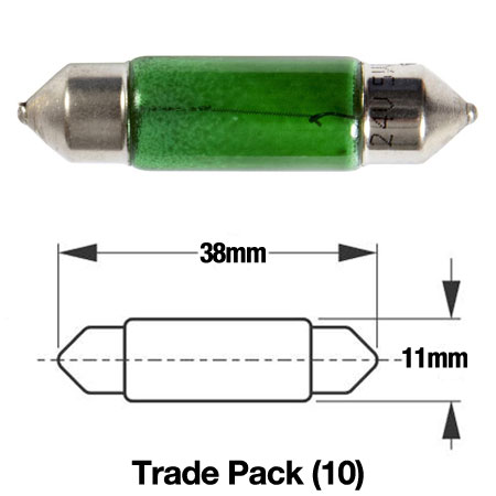 RING 24V 5W S8.5D 11X38 FESTOON BULB (GREEN) TRADE PACK 10